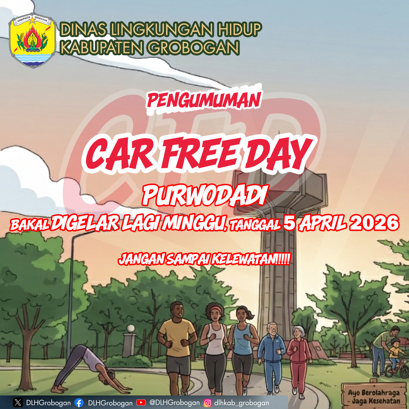 Car Free Day (CFD) Purwodadi bakal digelar lagi mulai Minggu, 5 April 2026!