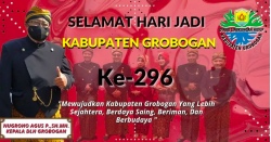 GROBOGAN-Selamat Hari Jadi Kab. Grobogan ke-296 Tahun. Semoga pembangunan semakin maju, perekonomian semakin meningkat dan masyarakat hidup dlm kerukunan serta persaudaraan...lingkungan hidup tetap terjaga. Aamiin